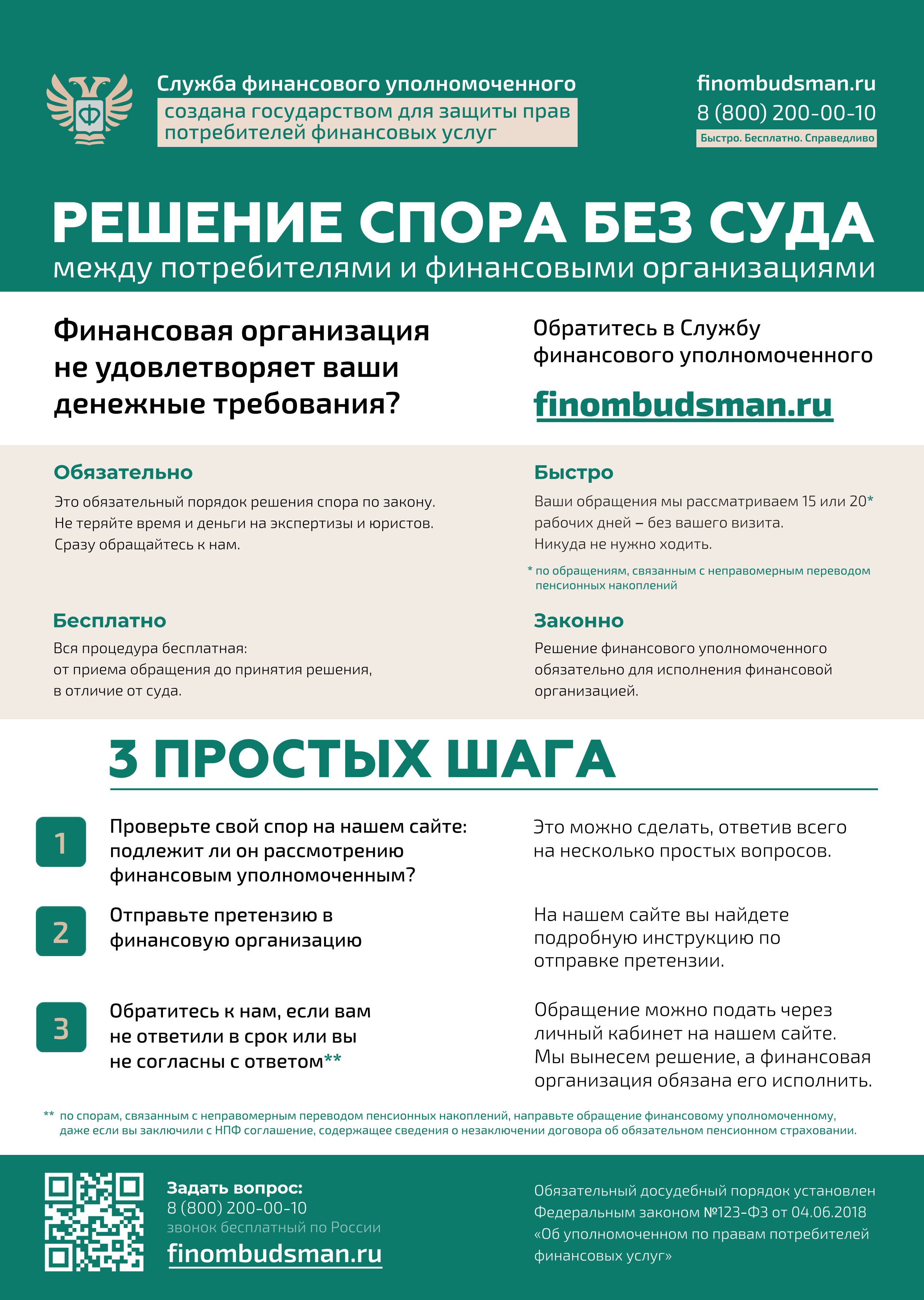 РЕШЕНИЕ СПОРА БЕЗ СУДА между потребителями и финансовыми организациями